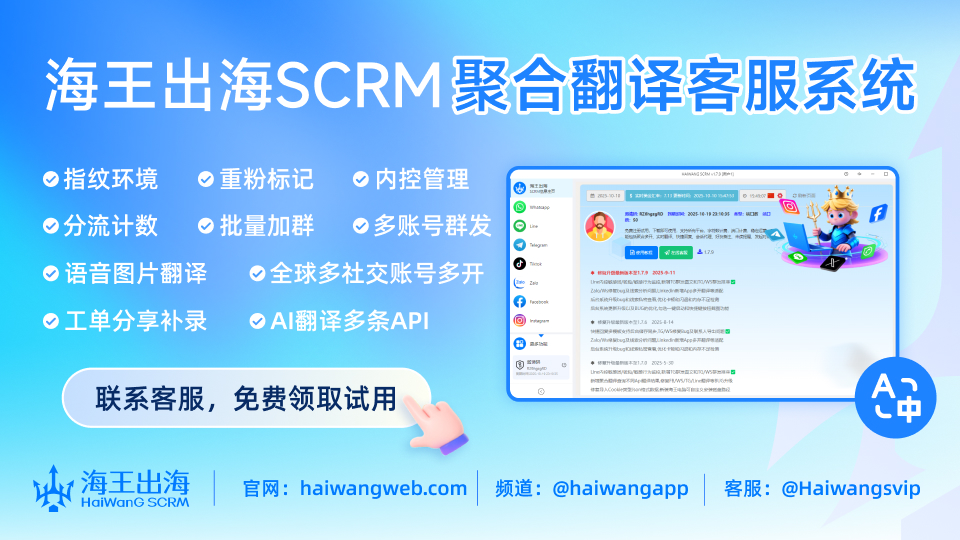 海王出海致力于为出海企业提供一体化社交聚合与AI翻译工具。我们相信技术应当打破壁垒,让跨境沟通像本地对话一样简单。目前已服务超过25,000家企业,覆盖全球190+个国家。